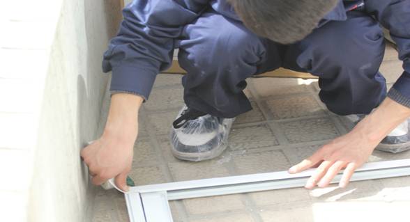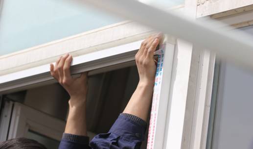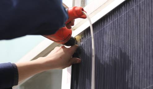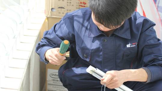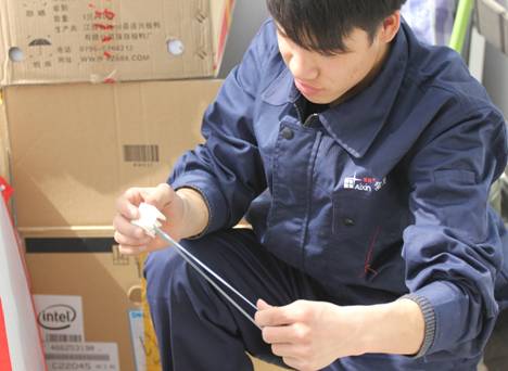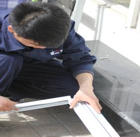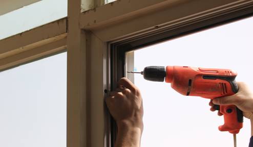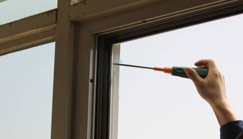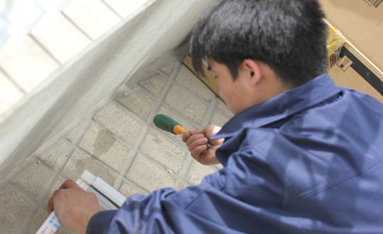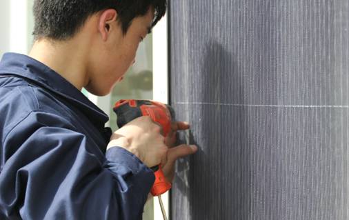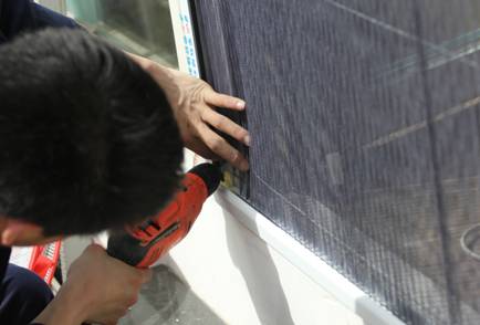 008(7)纱盒顶端钻孔,左手张紧纱网以防缠绕进电钻转盘;