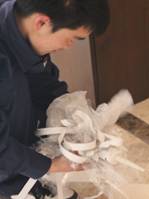 008(6)纱盒中部钻孔,左手张紧纱网以防缠绕进电钻转盘;